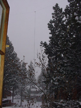 View of 20M Dipole from Kitchen Window. Elevation = 8,000 Ft above Sea Level plus 70 Ft in the Pine Trees